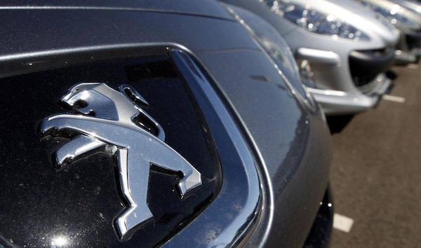 The Peugeot logo is seen on a car at a dealership Selestat, eastern France, Sept. 7, 2012.VINCENT KESSLER/Reuters