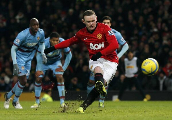 Manchester United’s Wayne Rooney misses a penalty during a match against West Ham United Jan. 16, 2013. The club listed on the New York Stock Exchange last year.PHIL NOBLE/Reuters