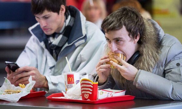 People eat in a McDonald's restaurant after it reopened following a hygiene probe in Moscow on Nov. 19, 2014. McDonald's reopened its flagship outlet in central Moscow after Russia clamped down on the fast-food chain for alleged hygiene violations following Western sanctions over Ukraine.ALEXANDER UTKIN/AFP / Getty Images