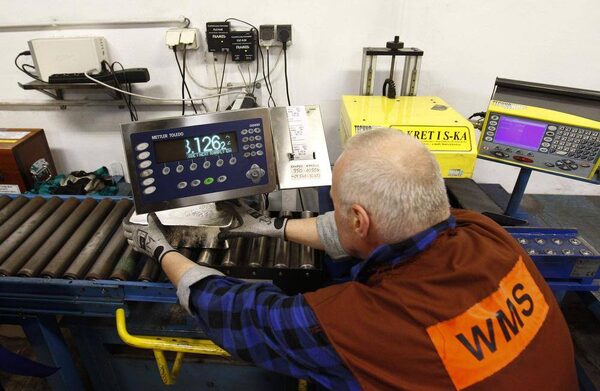 A worker weighs a finished silver bar. The smelter produces bars weighing 900 to 1,050 troy ounces and 99.99 per cent pure.PETER ANDREWS/Reuters