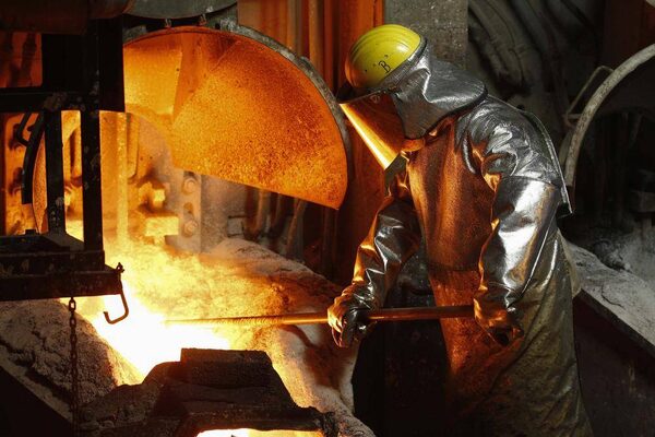 A worker pours melted copper at the KGHM Copper and Precious Metals smelter.PETER ANDREWS/Reuters