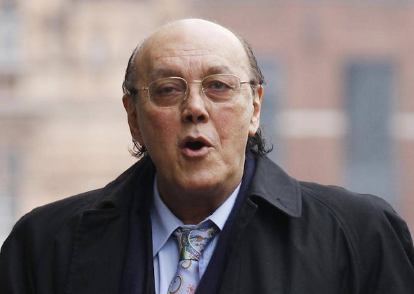 Turkish Cypriot tycoon Asil Nadir gestures as he arrives at the Old Bailey court in London in this photograph taken Feb. 10, 2012.LUKE MACGREGOR/Reuters