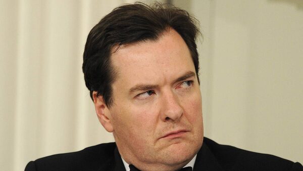Britain's Chancellor of the Exchequer George Osborne listens to a speech by Mervyn King, the Governor of the Bank of England at the Mansion House Banquet in the City of London June 14, 2012Paul Hackett/Reuters