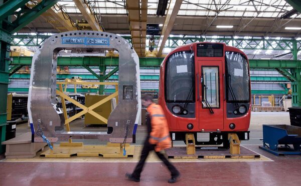 An employee passes components used in the assembly of London Underground tube train carriages at Britain's sole remaining railcar factory, operated by Bombardier Inc. and known as Litchurch Lane, in Derby, U.K., on Wednesday, Dec. 21, 2011.Jason Alden/Bloomberg