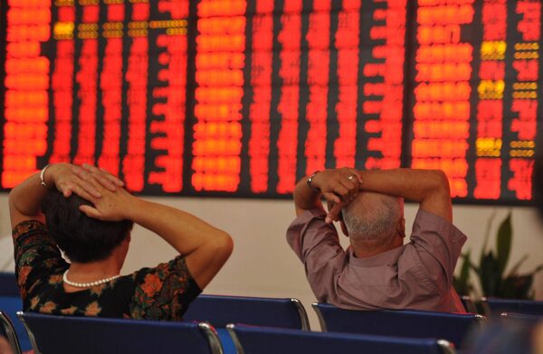 Investors observe stock market data at a stock exchange hall on August 10, 2015 in Fuyang, Anhui Province of China.ChinaFotoPress/Getty Images