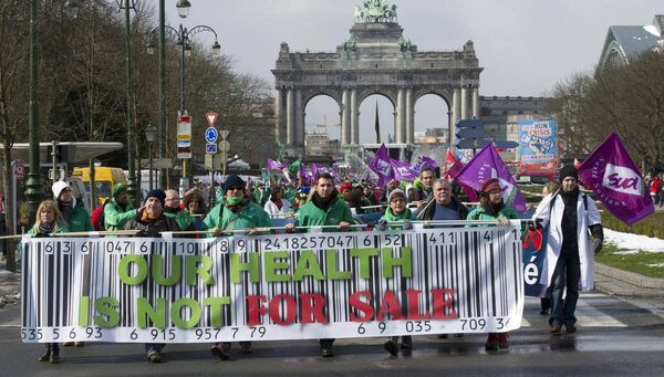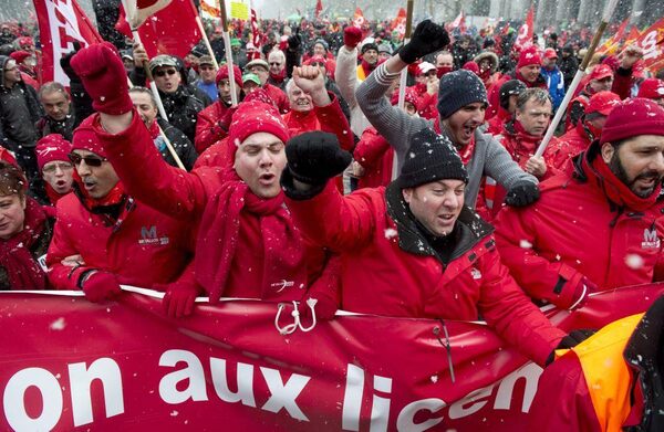 Union members march in Brussels.Geert Vanden Wijngaert/The Associated Press