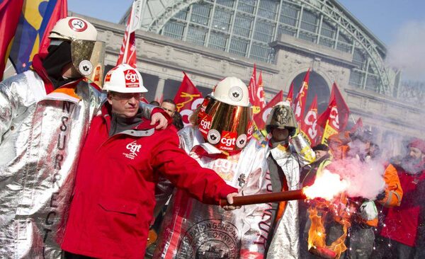 Union members light a fire during the demonstration. Thursday’s protest showed the frustration of the European trade union movement after years of austerity imposed by EU leaders.Geert Vanden Wijngaert/The Associated Press