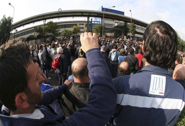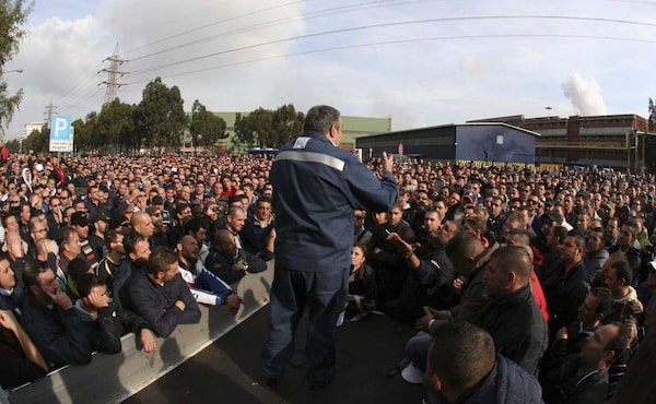 Workers participate in a rally outside the the ILVA plant in Taranto Nov. 27, 2012. Workers who turned up for work on Tuesday morning found the gates locked, and several thousand stormed the facility and began a sit-in.Lapresse/The Associated Press