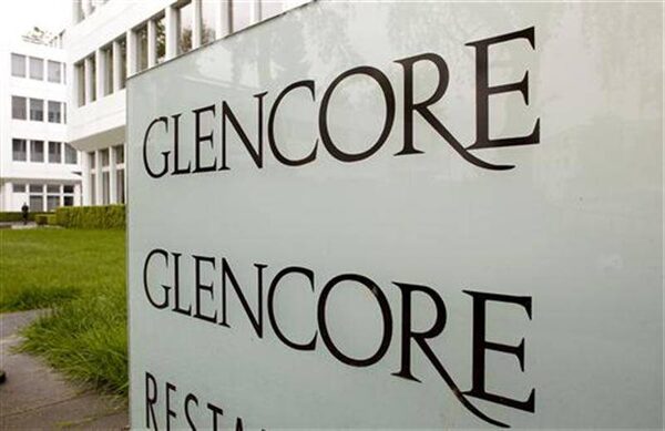The logo of Glencore is seen in front of the company's headquarters in the Swiss town of Zug May 9, 2012.ARND WIEGMANN/Reuters