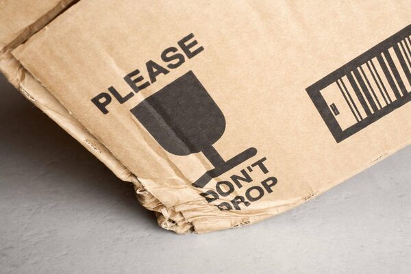 Cardboard box with 'Please Don't Drop' notice crushed against the floor.Getty Images/iStockphoto