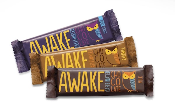 Awake Corp.’s products include caffeinated chocolate bar and a line of granola bars combining caffeine and B-vitamins.
