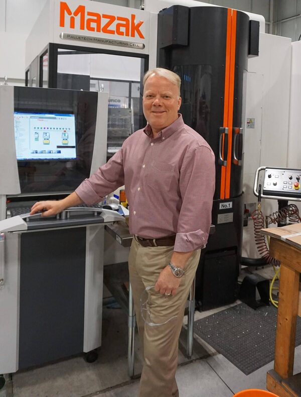 Shimco CEO Peter Voss with the company’s Mazak FMS (flexible manufacturing system) machine.