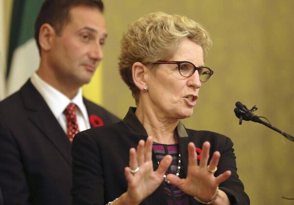 Premier of Ontario Kathleen Wynne, right, speaks next to Premier of Prince Edward Island Robert Ghiz during a news conference at the Chinese People Association for friendship in Beijing, China Thursday, Oct. 30, 2014.Andy Wong/The Associated Press