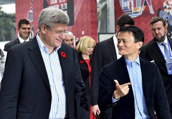 Prime Minister Stephen Harper, left, and Alibaba Group executive chairman Jack Ma visit the company’s headquarters in Hangzhou, Zhejiang province, on Friday, Nov. 7, 2014.CHINA DAILY/Reuters
