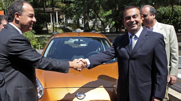 Renault/Nissan CEO Carlos Ghosn, right, and Rio governor Sergio Cabral shake hands in Rio de Janeiro on Thursday.SERGIO MORAES/Reuters