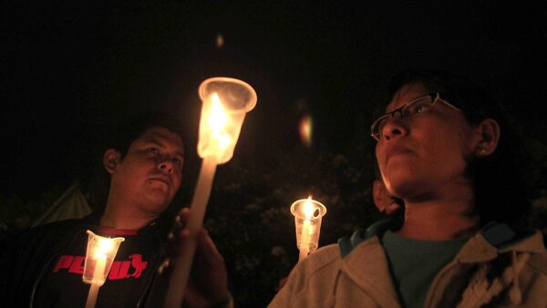 Demonstrators hold candles during a protest in Lima against Newmont's proposed $4.8-billion Conga gold mine in Cajamarca, Peru.PILAR OLIVARES