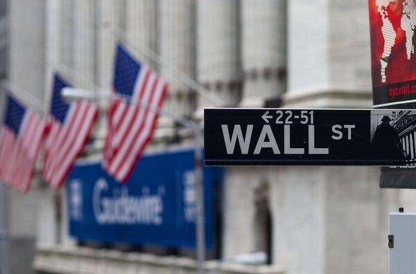 A Wall Street sign hangs near the New York Stock Exchange (NYSE) in New York, U.S. Some 35 companies in the S&P 500 are expected to report results this week, and 239 by the end of this month.Jin Lee/Bloomberg