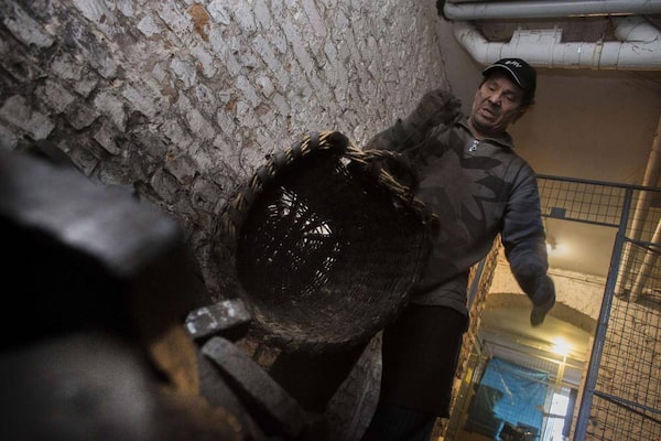 Coal delivery man Henry Schulz loads his lorry with combustible fuel in Berlin on Feb. 5, 2013. Mr. Schulz, 53, has been working as a coal delivery man for more than 30 years.THOMAS PETER/Reuters
