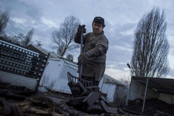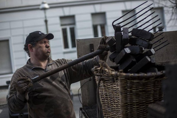 Mr. Schulz fills baskets with coal. He works for Helmut Braun Combustible Fuel, a three-man company that is one of the few remaining coal retailers in Berlin.THOMAS PETER/Reuters