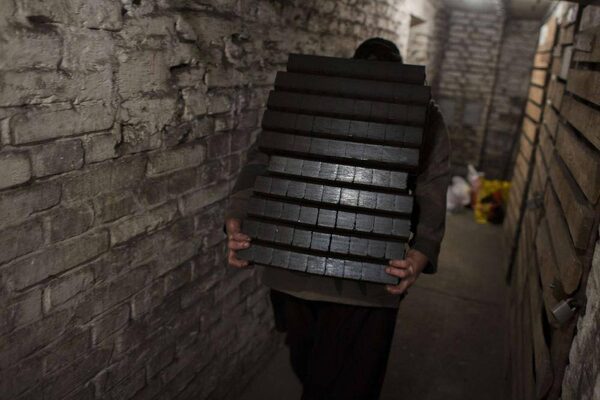 Mr. Schulz carries packages of coal into the basement of a customer. There are roughly 30,000 Berlin household that still use coal heating.THOMAS PETER/Reuters