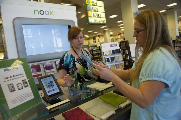 Employees look at a cover for the Barnes & Noble Inc. Nook Tablet at a store in Emeryville, Calif., in this file photo.David Paul Morris/Bloomberg
