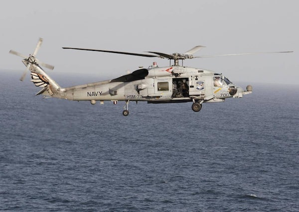 A Sikorsky SH-60 Seahawk helicopter flies near the aircraft carrier USS Abraham Lincoln in the Strait of Hormuz in this Feb. 14, 2012, file photo. Boeing Co. and Sikorsky Aircraft, a unit of United Technologies Corp., have reached a strategic teaming agreement to develop a next-generation multirole helicopter for the U.S. military.JUMANA EL HELOUEH/Reuters