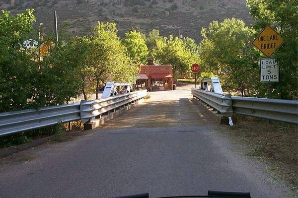 Morrison, Colorado’s historic South Park Street bridge. The town (population: 430) is now faced with the expensive choice of ripping up the bridge and removing the beams at a cost of $30,000, or losing tens of thousands of dollars of U.S. government funding.