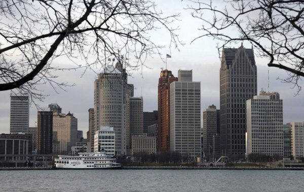 The skyline of Detroit, Michigan is seen from Windsor, January 4, 2012. Saddled with crippling debt, mounting labor costs, and onerous union contracts, the city that paved the auto industry's success is in need of a bailout of its own. Picture taken January 4, 2012.Rebecca Cook/Reuters