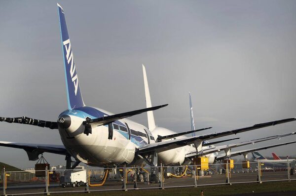 787 Dreamliner jets, including two belonging to All Nippon Airways (ANA) of Japan, sit idle on the tarmac parking at Paine Field in Everett, Wash. Jan. 17, 2013. Airlines scrambled to rearrange flights as Europe, Japan, Qatar and India joined the United States in grounding Boeing’s 787 Dreamliner passenger jets while battery-related problems are investigated.ANTHONY BOLANTE/Reuters
