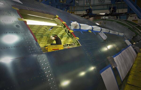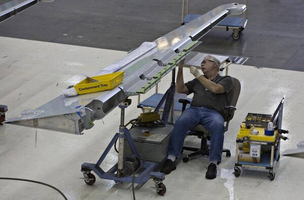 A worker assembles a wing flap for the Boeing 737-900 at their operations in Renton, Wash., Oct. 18, 2012. Boeing is racing to turn a record backlog of more than 4,000 orders into revenue and profit.ANDY CLARK/Reuters