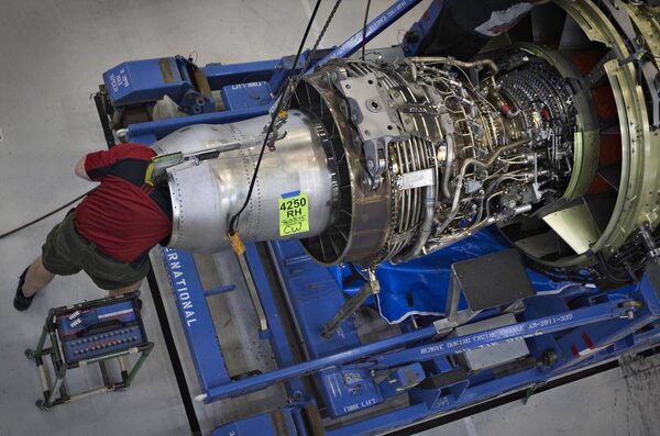 A technician works on a jet engine for the Boeing 737-900 in Renton.ANDY CLARK/Reuters