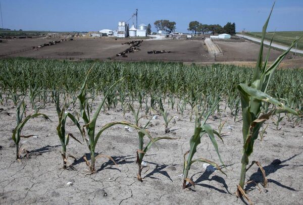 Stunted corn grows next to a cattle feed lot in Springfield, rural Omaha, Neb. on Tuesday. The drought gripping the United States is the widest since 1956.Nati Harnik/The Associated Press
