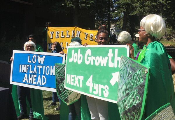 One group at Jackson Hole did not have a spot on the official program, but they were the most vocal in terms of expressing their opinions on who should be the next Fed chair. Fed Up, a group representing community activists, labour unions and liberal policy groups, held a rally Friday on the grounds of the mountain lodge where the conference took place and presented petitions signed by 20,400 people urging Trump to pick Yellen for a second term.