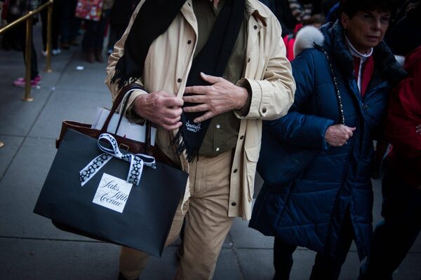 A shopper carries a Saks Fifth Avenue Inc. bag on Fifth Avenue in New York, U.S., on Saturday, Nov. 26, 2016.Mark Kauzlarich/Bloomberg