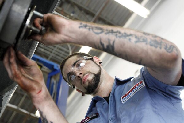 Technician Chris Shannon works on a costumers car at a Pep Boys Auto retail and service location, in Philadelphia in this file photo.Matt Rourke/The Associated Press