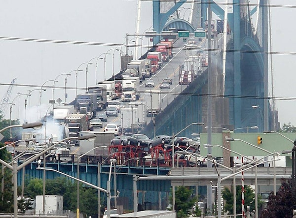 Traffic backs up on the Canadian side Ambassador bridge between Windsor, Ont. and Detroit, Mi. Wednesday June 7, 2006.Jason Kryk/The Canadian Press