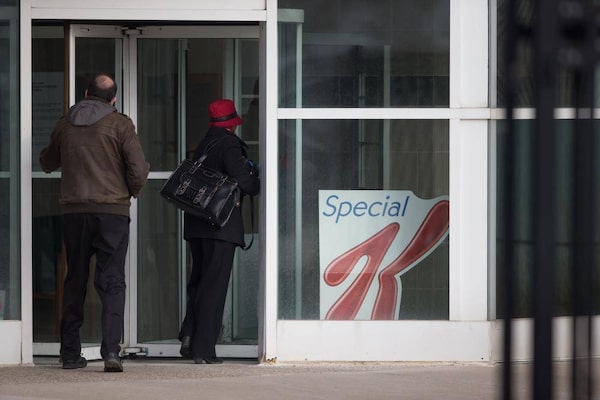People arrive at the Kellogg's plant in London, Ontario, Dec. 10, 2013, after the company announced the closure of the facility putting about 500 people out of work.GEOFF ROBINS/The Globe and Mail