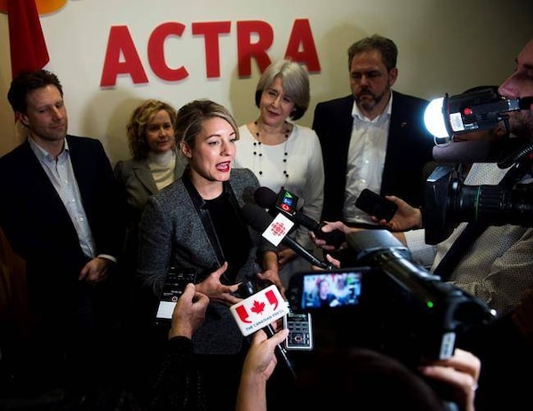 Heritage Minister Melanie Joly addresses the media after two meetings to discuss harassment in the film, TV and theatre worlds in Toronto on Wednesday, January 17, 2018.Nathan Denette/The Canadian Press