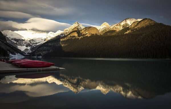 Canoes are seen on a dock on Lake Louise at Banff National Park, in the Canadian Rocky Mountains outside the village of Lake Louise, Alberta, October 3, 2014. It has been three years since federal funding helped promote Canada to U.S. travellers.MARK BLINCH/Reuters