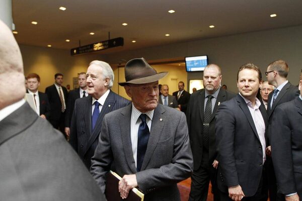 Barrick Gold Corp. chairman Peter Munk arrives at the Metro Toronto Convention Centre on Wednesday, April 24, 2013, for his company’s annual general meeting. Behind to his right, Barrick board member and former prime minister Brian Mulroney.Fernando Morales/The Globe and Mail