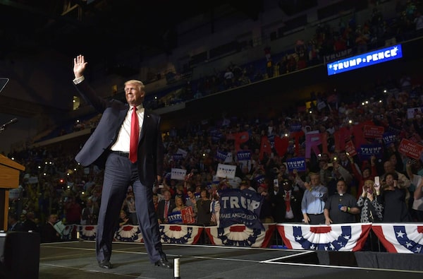 Donald Trump arrives on stage at a rally in Wilkes-Barre, Pa. on Oct. 10, 2016. Pennsylvania, a state that hadn’t gone Republican since the 1980s, fell to Mr. Trump in last week’s election.Mandel Ngan/AFP / Getty Images