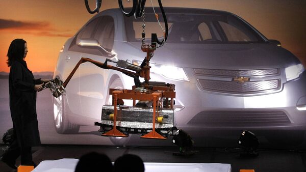 The first battery pack for the General Motors Chevrolet Volt extended-range electric vehicle comes off the assembly line.Bill Pugliano