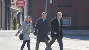 Derek Oland, right, brother of Richard Oland, and other family members leave provincial court in Saint John on Nov.13, 2013, where Dennis Oland made a brief court appearance.