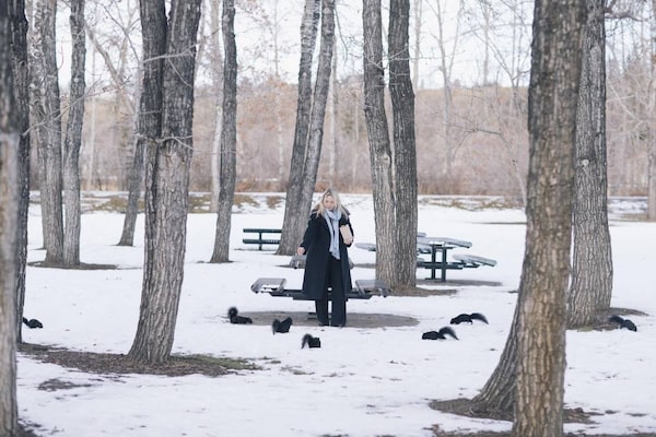 Leslie Lundquist communes with the squirrels in Calgary’s Prince’s Island ParkHubert Kang