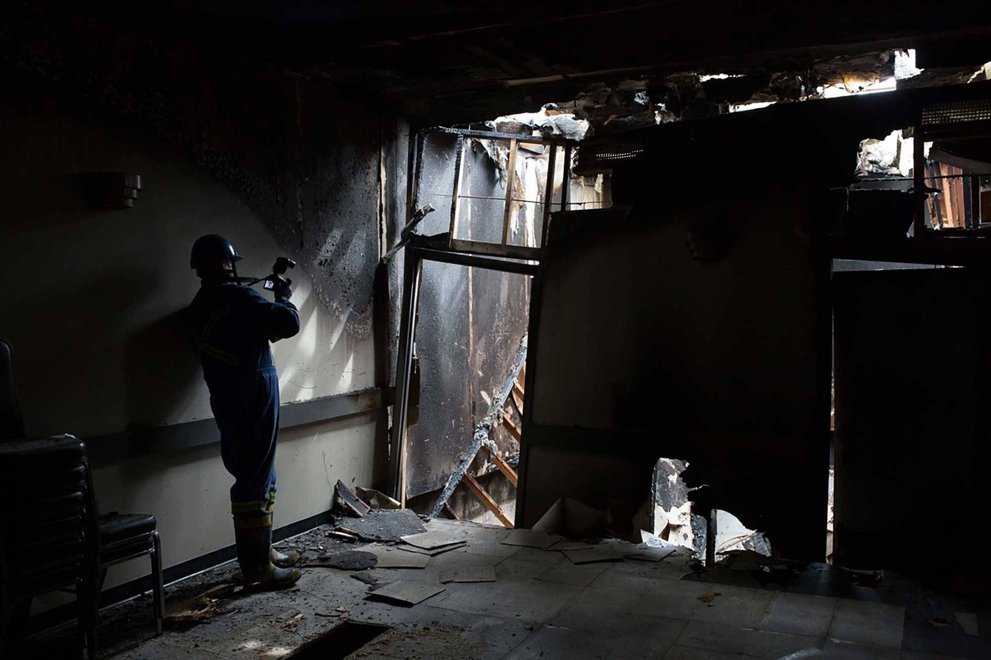 It’s a chilly morning, and Swan is dressed in heavy coveralls and steel-toed boots. He starts his investigation by walking around the perimeter of the cinderblock building, looking at the blackened walls. Holding a miniature voice recorder, he dictates notes about wind direction, heat damage and the absence of any signs of forced entry. “I’m just taking it all in,” he explains. “Starting on the outside and working in – looking at the walls and determining that it didn’t start here and it didn’t start there. As Sherlock Holmes put it, you have to eliminate the impossible; then whatever remains, no matter how improbable, is the truth.”
