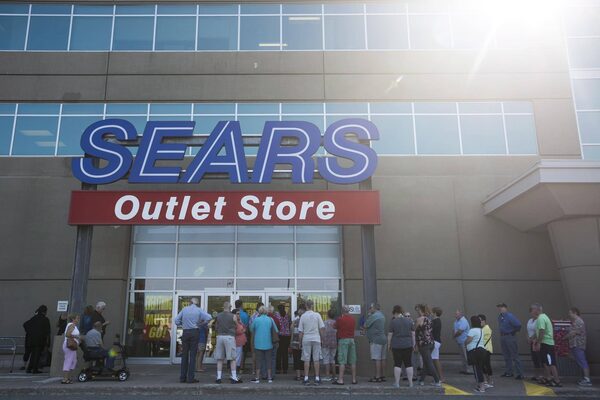 Shoppers stand in line waiting for a Sears outlet store to open in Halifax in July.Darren Calabrese/The Canadian Press