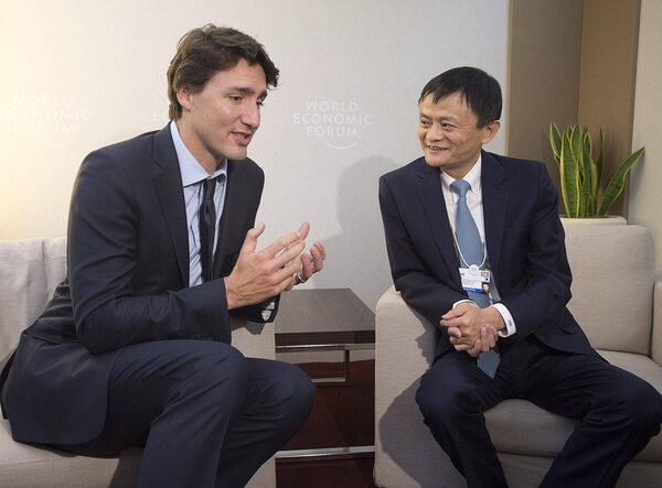 Prime Minister Justin Trudeau chats with Jack Ma, founder and executive chairman of Alibaba Group, in Davos, Switzerland, on Friday, Jan. 22, 2016.Andrew Vaughan/The Canadian Press