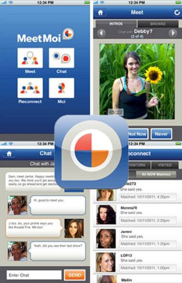 MEETMOI: Location-based app that has "stripped down dating to what's most essential – the introduction" Tagline: The mobile matchmaker. Always looking for you Founders: Andrew Weinreich and Jeremy Levy, in 2007 How it works: When a match is nearby, MeetMoi sends an alert to your phone and, if you like what you see, you can choose to connect with that person in real time No. of employees: 10 No. of users: Millions $$$: Monthly subscription model Outlook: Strong, given the strength of the mobile market Website: http://www.meetmoi.com