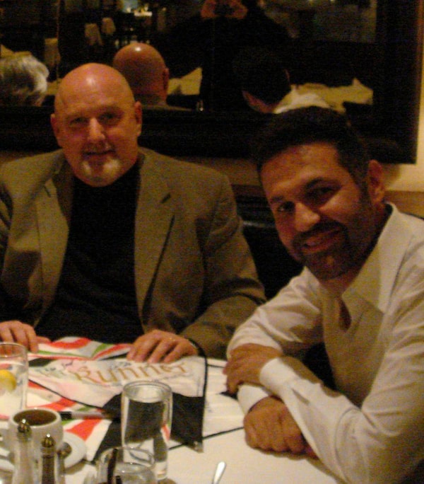 Kite collector George Paisiovich, left, with The Kite Runner author Khaled Hosseini. Mr. Hosseini gave two signed kites, one in English and one in Farsi, to The Kite Museum that Mr. Paisiovich was the driving force for.