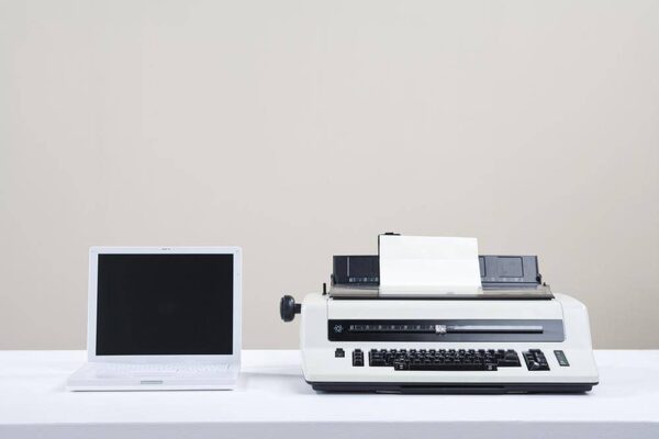 Laptop next to typewriter on tableDarrin Klimek/Getty Images